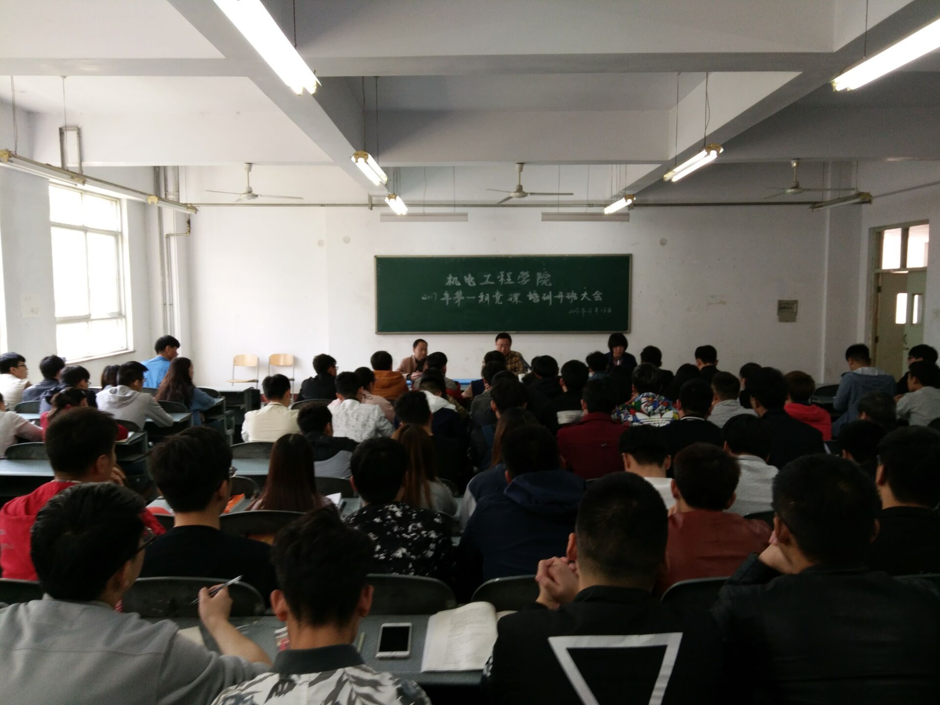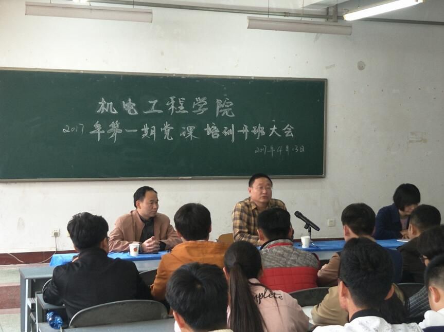 4月13日下午,太阳集团网tyc97282017年第一期党课培训开班大会在博学楼110教室举行,大会由团总支书记王珊老师主持,参加此次大会的有我院卢杉副院长、学生支部书记王保华老师以及92名入党积极分子。