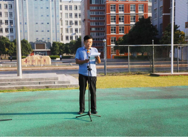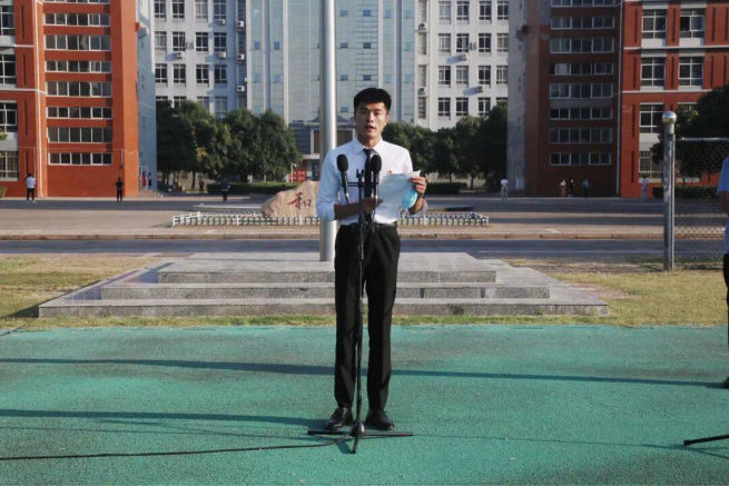 学院党委书记郭建洲同志发言,鼓励同学们共同克服疫情带来的困难,准备迎接新的挑战,努力跟着党的步伐,成为能够使国家富强,民族振兴的中坚力量。李开心同学代表太阳集团网tyc9728学子在国旗下讲话,全体师生肃静站立,仔细聆听。同学们,健康是人类最宝贵的财富,我们要好好珍惜。疫情并不可怕,只要我们切实做好预防工作,一定能将病毒拒之门外,健康快乐的度过每一天。新学年,愿老师们教得有效,同学们学得快乐,让我们一起向上向善勇敢追梦、脚踏实地努力圆梦,美好的生命一定能在你们的努力下炫彩夺目。