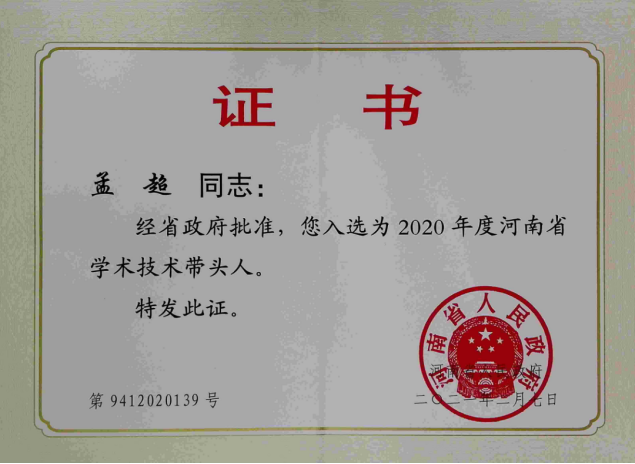 近日,河南省人民政府办公厅下发了《关于公布2020年度河南省学术技术带头人名单的通知》,经省政府审核批准,我院孟超老师入选。