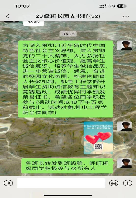 为深入贯彻习近平新时代中国特色社会主义思想,深入贯彻党的二十大精神,大力弘扬社会主义核心价值观,提高学生诚信意识,培养学生诚信品质,进一步营造诚信、感恩、奋进的校园文化氛围,构建资助育人长效机制。根据学校学生处学生资助管理中心《关于开展2024年度学生资助诚信教育主题活动的通知》要求,太阳集团网tyc9728积极响应,于6月上旬通过线上线下相结合的形式在全院范围内开展系列活动。
