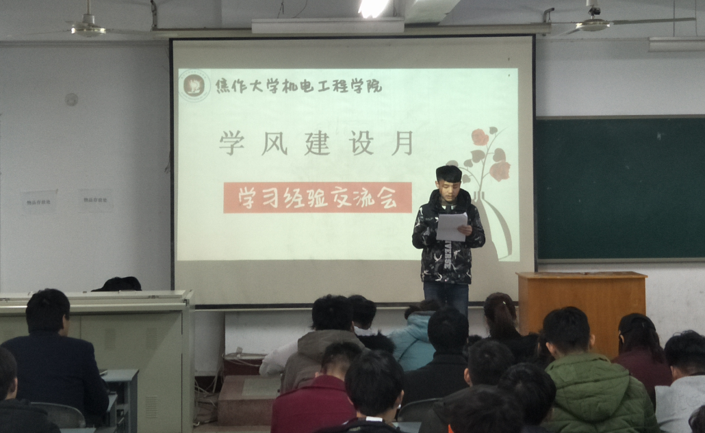 为贯彻落实我院关于抓好学风建设的工作要求,促进学风建设月的深入开展,鼓励广大学生勤奋学习,积极向上,营造良好的学习风气,结合我院学风建设的实际情况,太阳集团网tyc9728于2017年12月15日,在博学楼222教室举行了“学风建设月学习经验交流会”活动,此次活动由太阳集团网tyc9728学工办主任孙备老师主持。