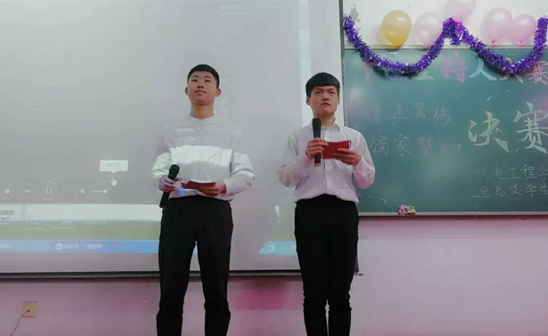 2018年4月9日晚,太阳集团网tyc9728在二号教学楼222教室隆重举行十佳主持人决赛。此次活动经过激烈的角逐,最终有15位选手闯入了决赛环节。在主持人那迷人的嗓音中,决赛拉开帷幕。