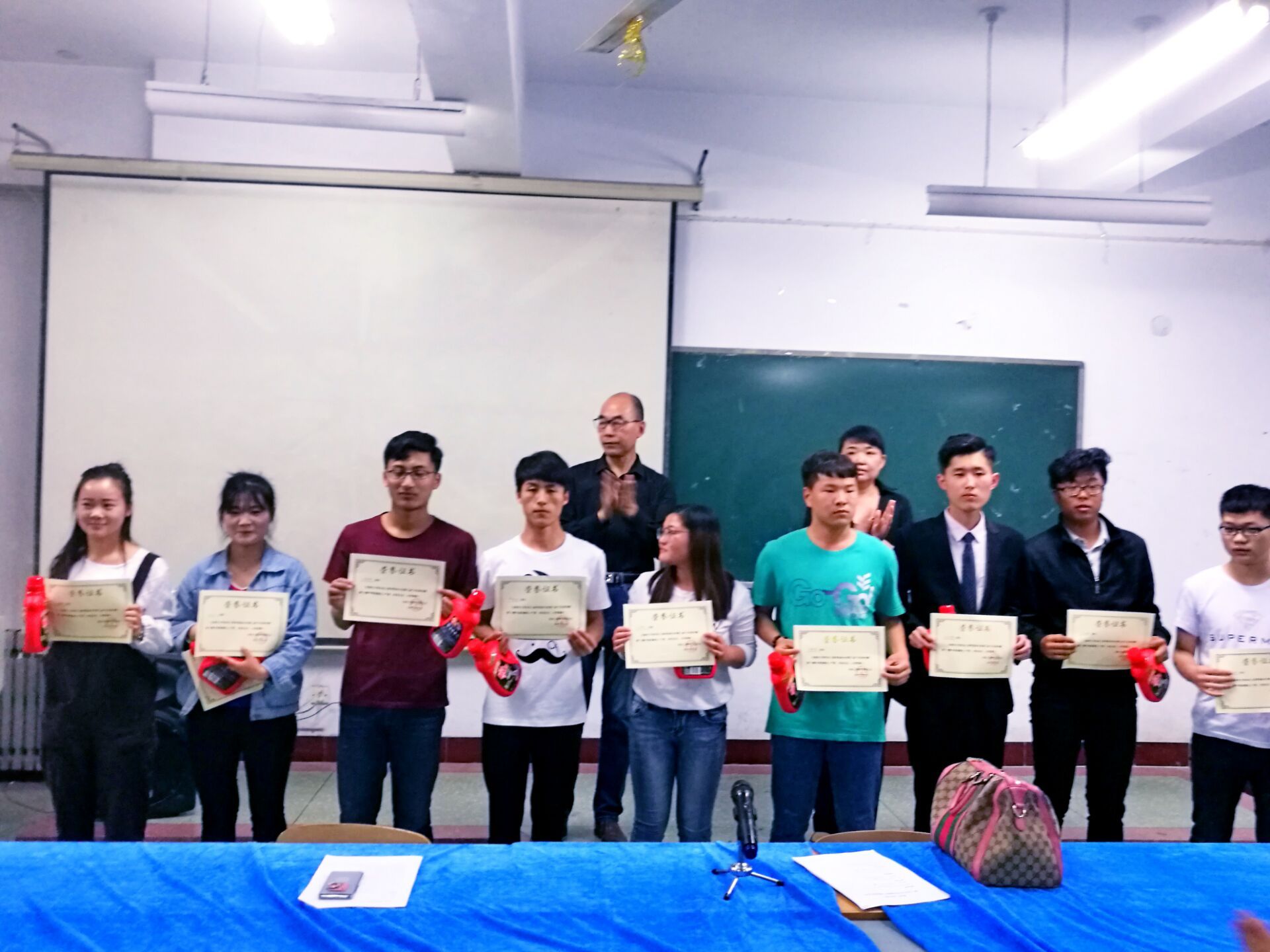 活动开始由李淼书记宣读获奖名单,接着由侯继红院长讲话,侯院长指出三点具体要求:第一,树立正确的世界观、人生观、价值观;第二,尊重知识、勤奋学习;第三,戒骄戒躁、再创佳绩,并对我院在运动会期间取得的优秀成绩进行了肯定与赞扬。接下来由李淼书记和侯继红院长为获奖的同学们颁发奖状和奖品。最后,他们再次向获奖的同学表示祝贺,向各位辛勤的老师表示感谢,并表达了对学院及全体师生的美好祝愿。