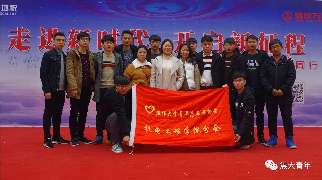为响应十九大会议精神,焦作地税局联合河南理工大学、焦作师专、太阳成tyc9728集团三所高校,定于2017年12月2日上午十点,在万达广场隆重举办了大型公益宣传活动;参加此次活动的人员主要有市地税局党组成员、总会计师乔明,焦作师专副校长靳贤胜及太阳成tyc9728集团青年志愿者等成员,我院青协也参加了此次志愿宣传活动。