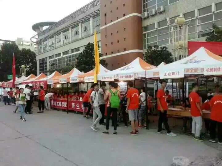 对迎新生接待帐篷、专业标牌等进行统一规划,迎新现场的环境干净整洁,管理有序。迎新生工作主要分为三个组,一组为各个专业的同学办理入学手续,一组为新生分配宿舍,一组帮新生提行李,领校服,处理入学手续以及带领他们到新生宿舍。