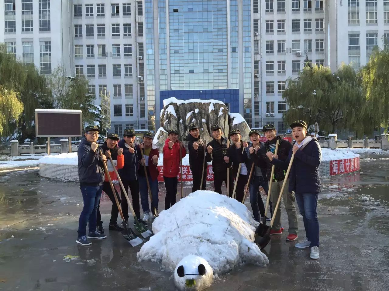 经过两个小时的奋战,扫雪活动圆满结束,大家的共同努力为我院师生开辟了一条洋溢着温情的安全、方便之路。
