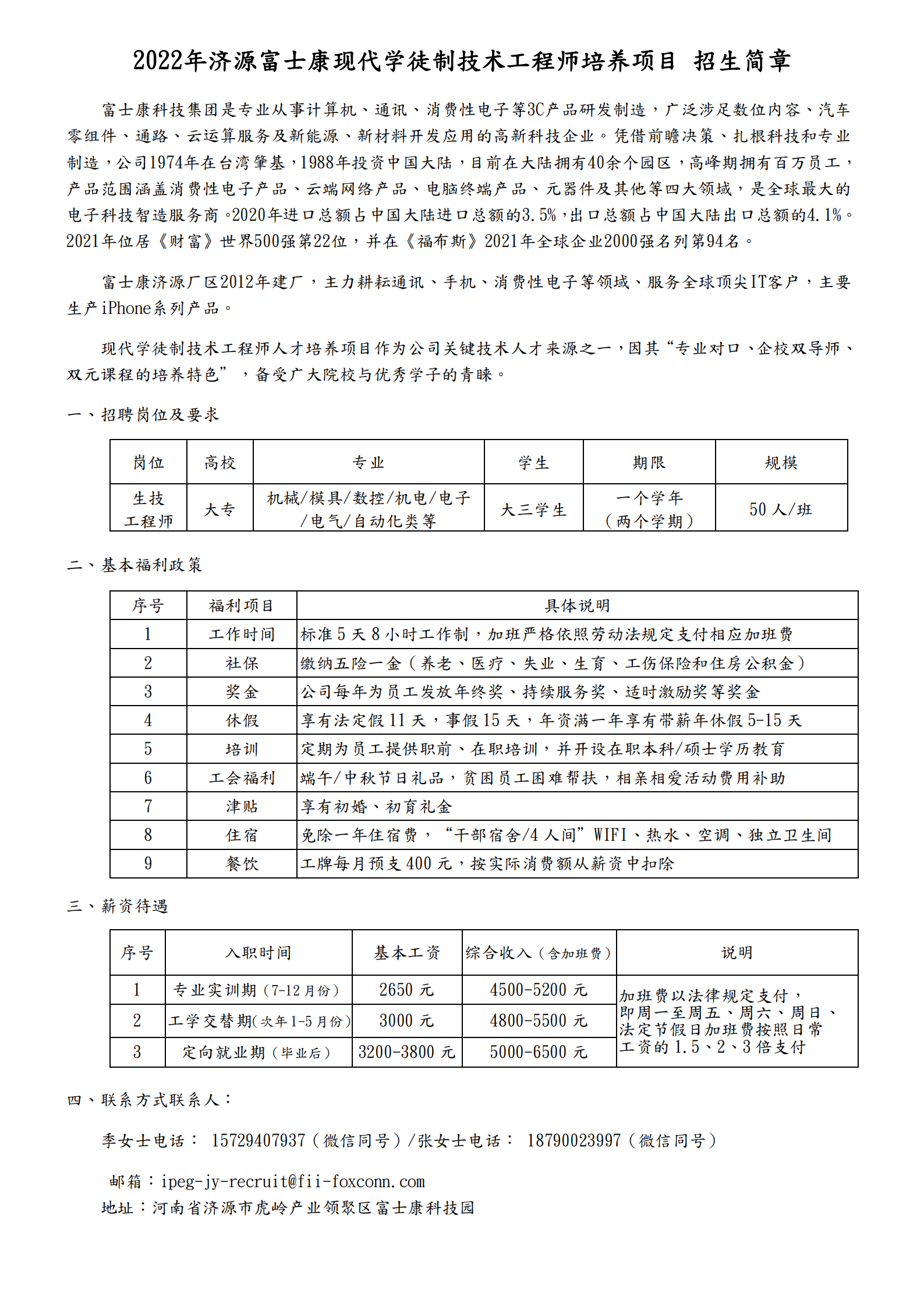 济源富士康招聘简章